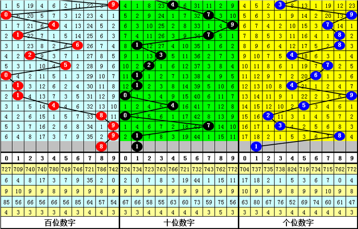 百位目前最冷号码为:7,当前遗漏35期,该号码历史最大遗漏为64期,本期没有解冻的迹象,继续放弃;